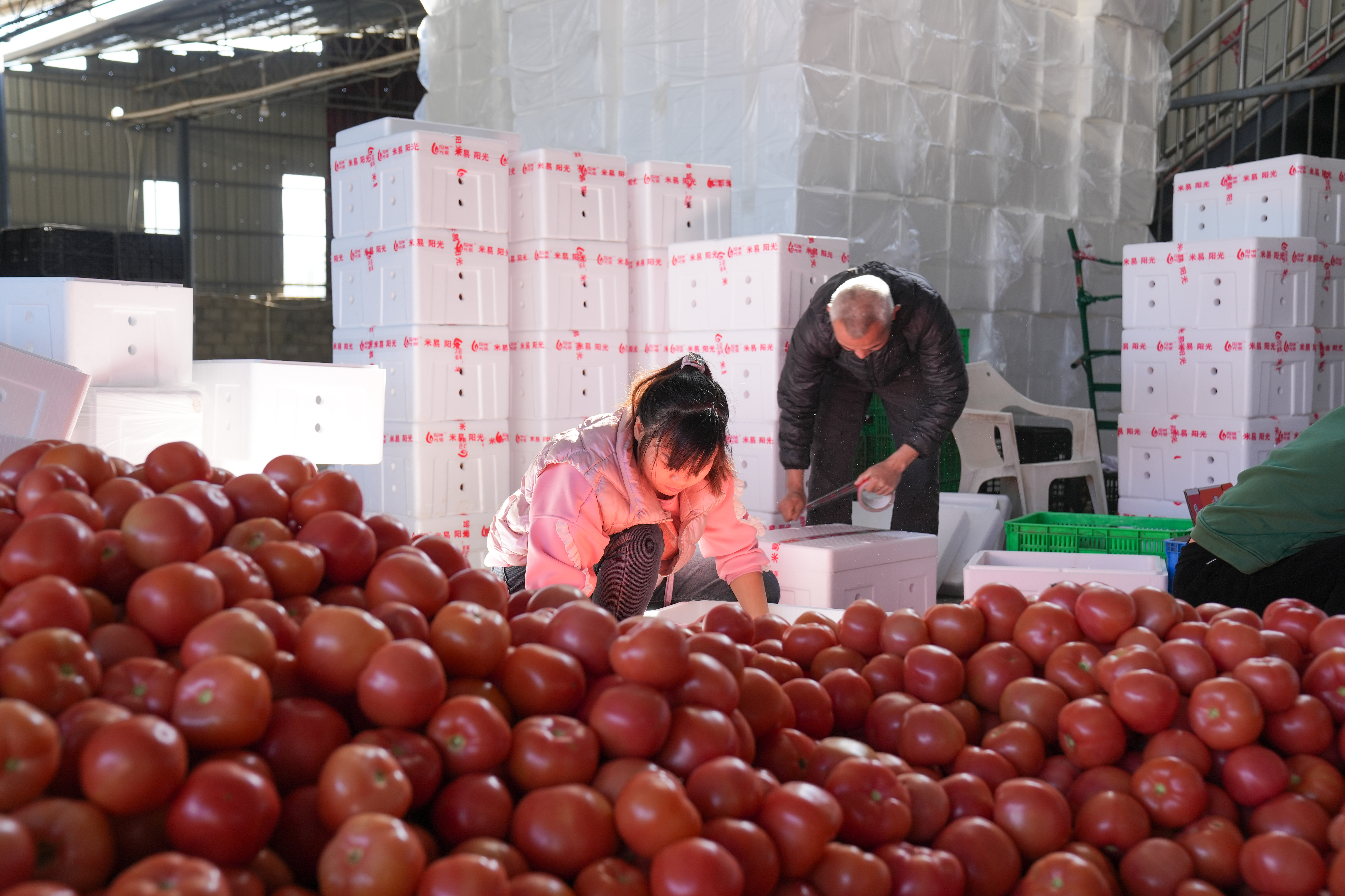 “王老板这是第几车了?”“第4车了。”“生意好啊!”“还行,可以过一个好年。”几名番茄收购商一边装箱,一边聊天。收购商“王老板”是山东人,今年是他第10年到米易收购番茄。“这两天价格在3块多,带萼片果能卖到4块。”