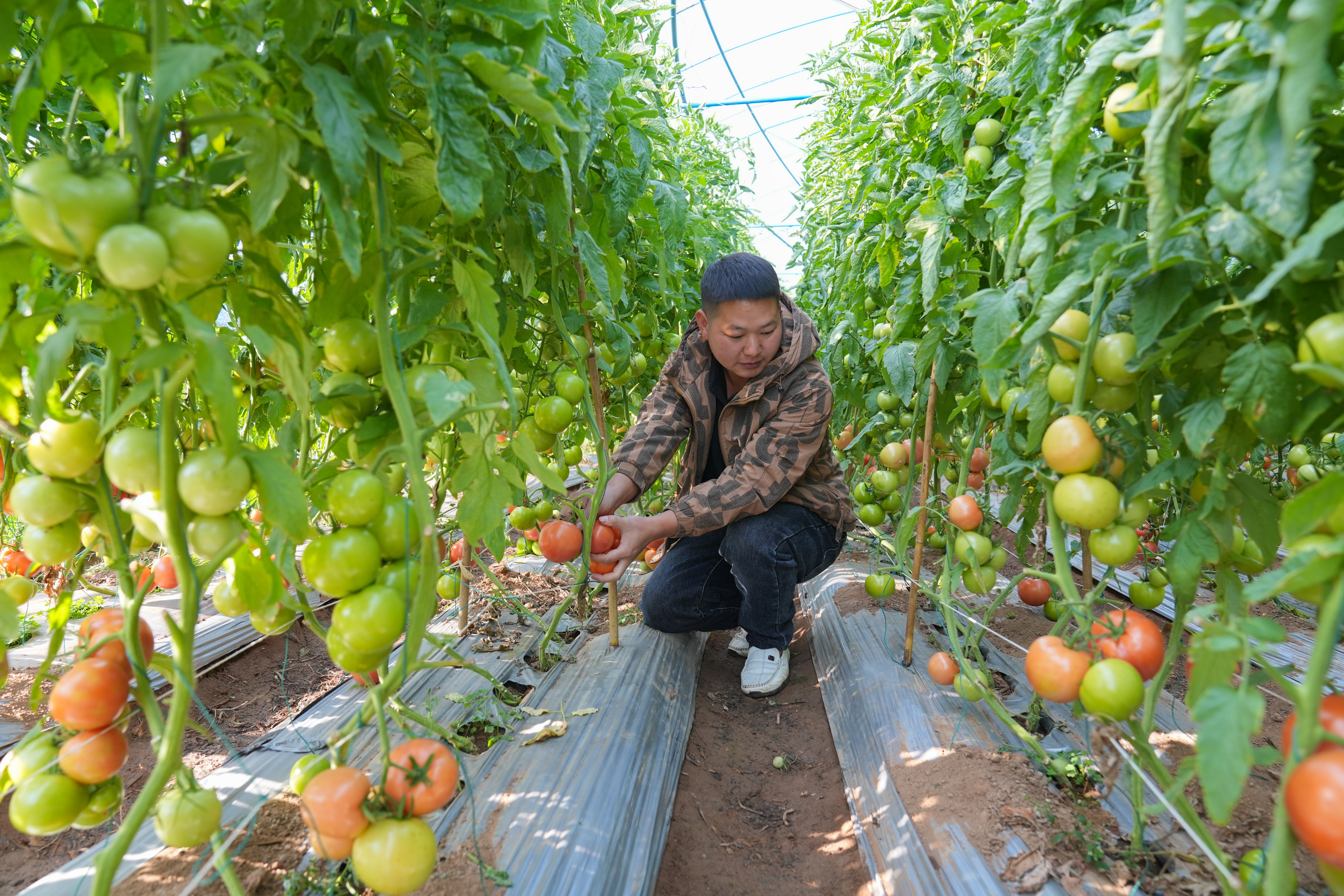 杨智伟是兴欣农业的签约种植户之一。1994年出生的他之前在外务工,看到蔬菜种植有前景,于是回家承包土地,将原来3亩的番茄扩种到了15亩,今年正好赶上“番茄红利”,“按照目前的价格来看,今年估计能收入50万元以上。”